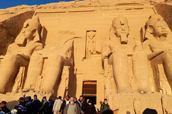 Sun aligns on Ramses II’s statue at Abu Simbel Temple, a biannual phenomenon occurring on October 22 (his birth anniversary) and February 22 (his coronation day).